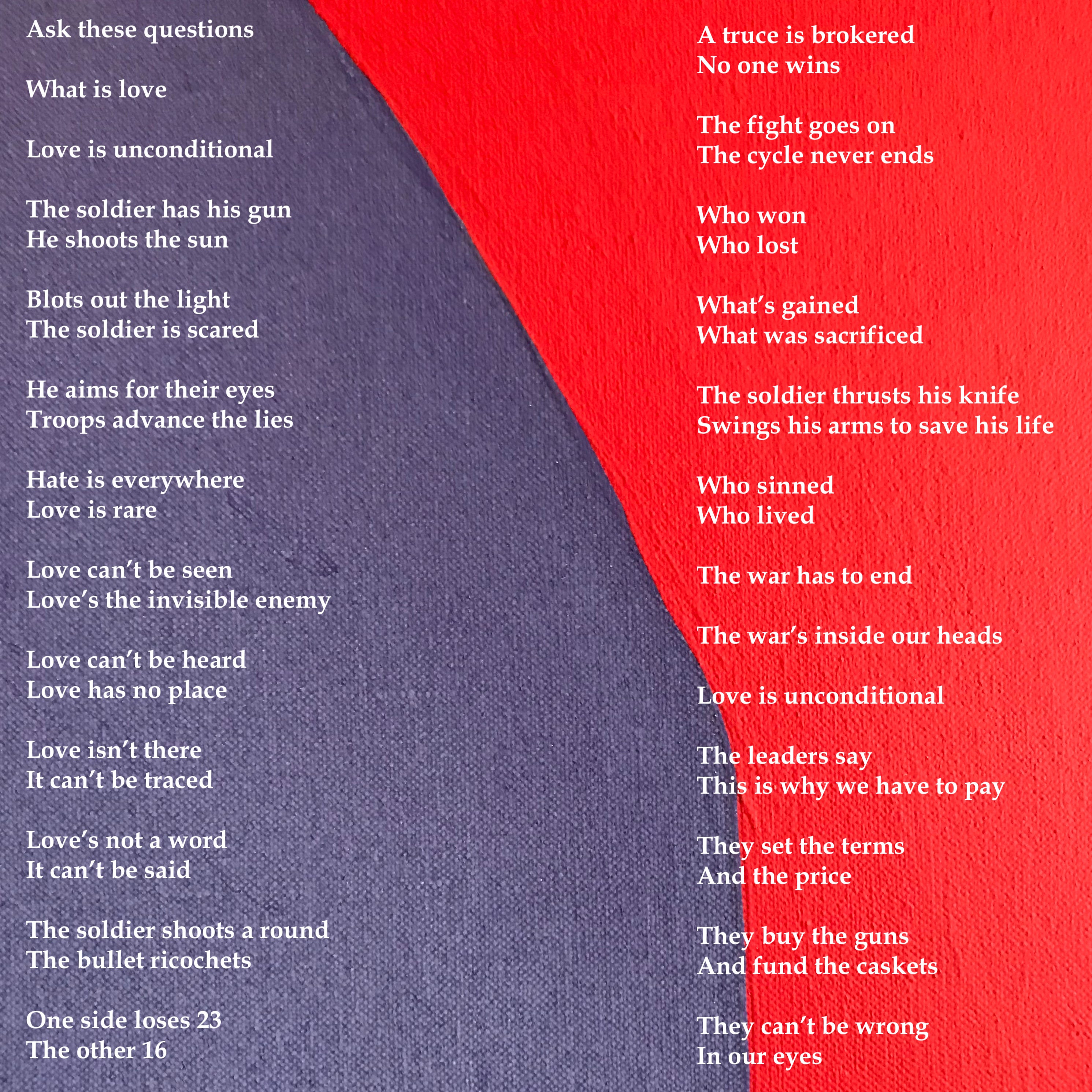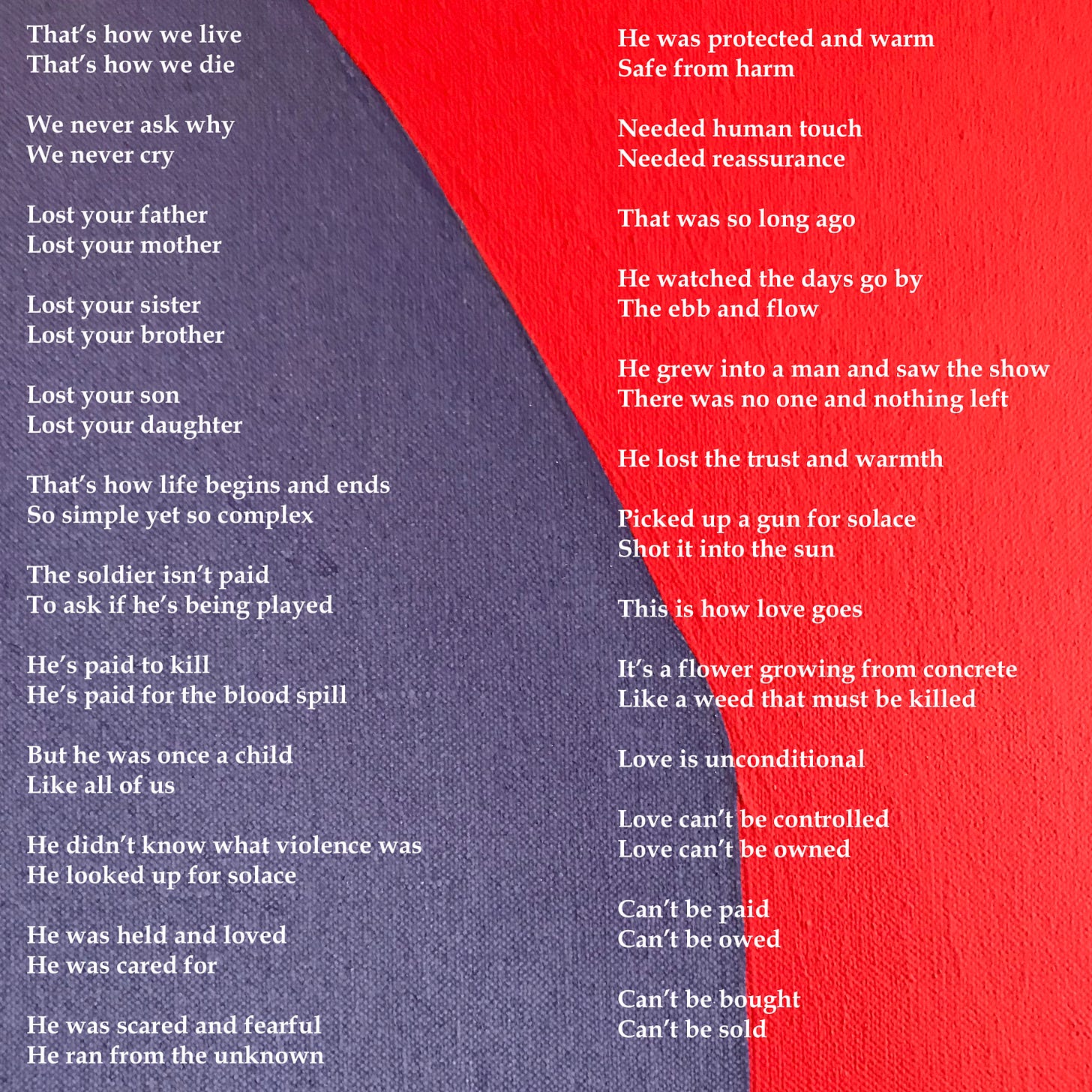 I've read the poem upon recieving it, but have listened to the track only just now. I'd say this is in a way a musical equivalent to Picasso's Guernica. Especially with the backdrop of horrible news and images we see from Ukraine, Gaza and so many other places.