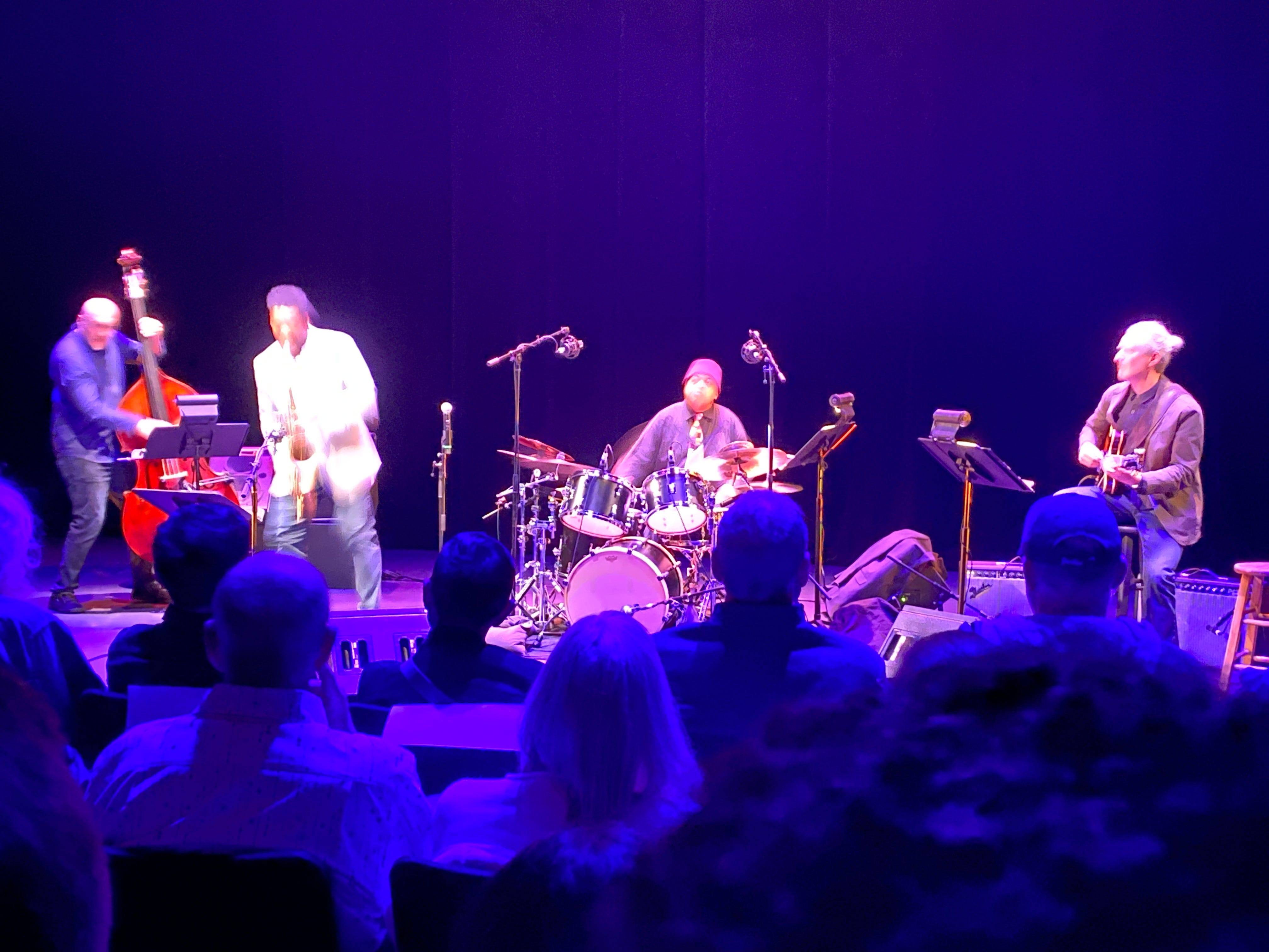 Lisa and I attended Ravi Coltrane’s performance at the Downtown L.A. REDCAT Theater on Friday 18 April 2025. It was the capstone of Ravi’s tenure as the Charlie Haden Artist in Residence at California Institute of the Arts’ The Herb Alpert School of Music. Charlie co-founded the CalArts Jazz Program in the early 1980s. After Charlie’s death, CalArts started a scholarship in his name. This year’s Charlie Haden graduate is a promising and talented young bassist named Adam Hernandez. My sisters and I watched Adam’s thesis recital a few days earlier on the CalArts campus.